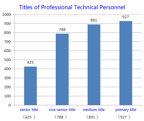 The Academy has 5002 staffs in total, including 3662 professional technical workers, which accounts for 73% of the total staffs number, the structure of professional technical personnel has been classified according to different titles and degrees as below: