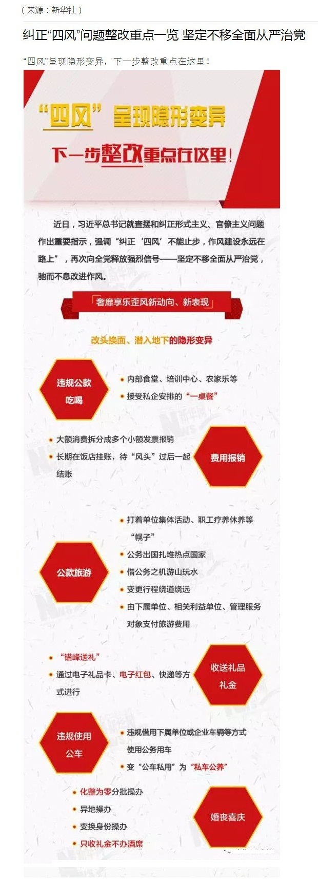 糾正“四風”問題整改重點一覽 堅定不移全面從嚴治黨